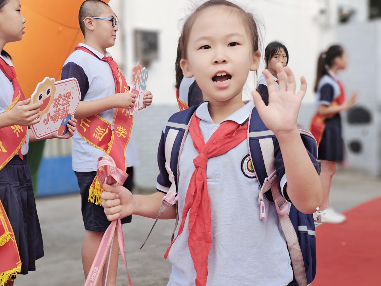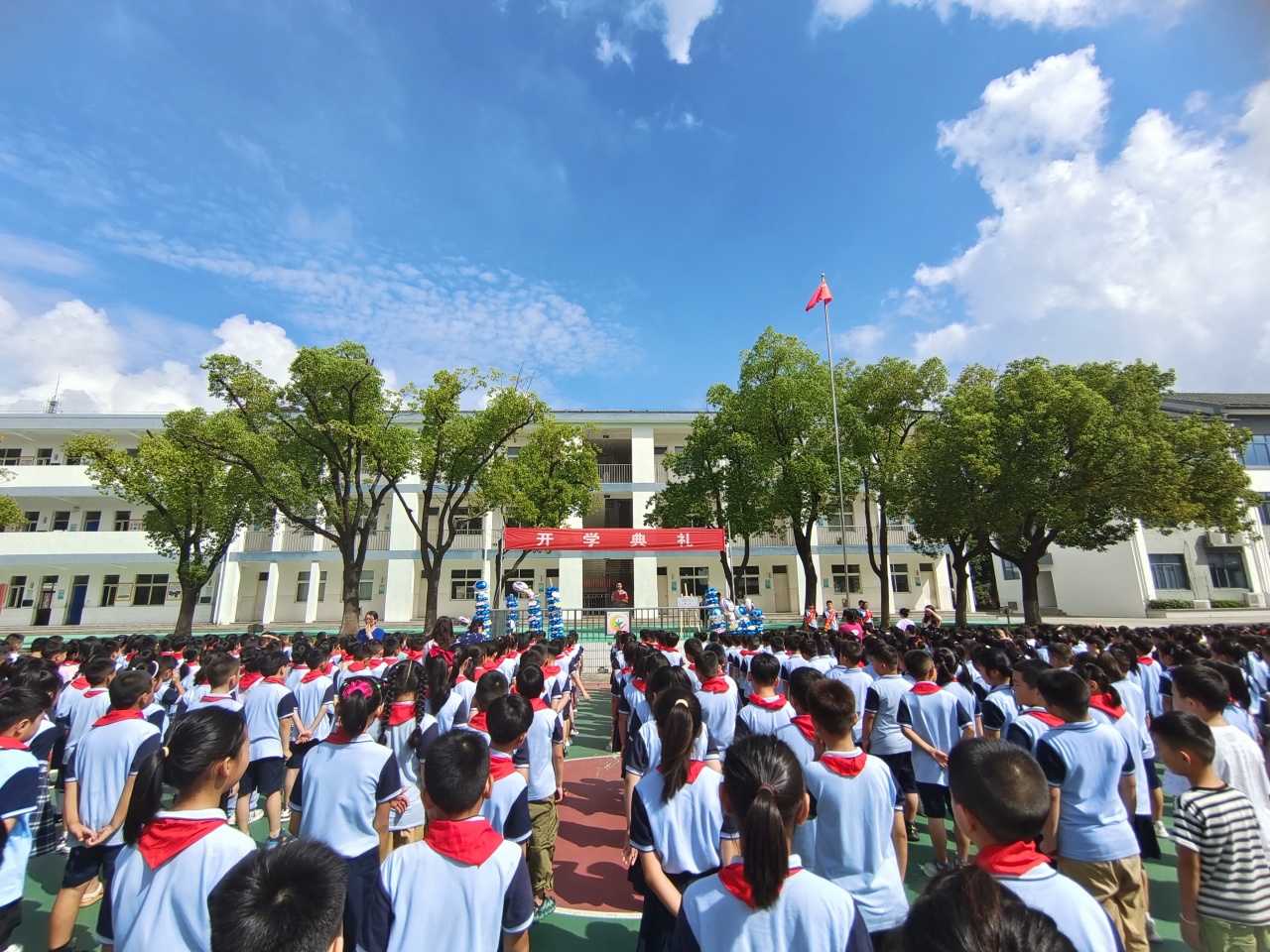 开学典礼在队员们庄严的宣誓声中落下帷幕,徐小学子们站在新的起点上,将带着从容的微笑,带着钱校长和老师们的期盼向美丽出发,立志向,修品格,乘风破浪向未来!