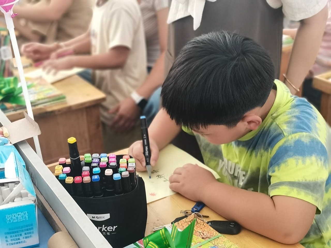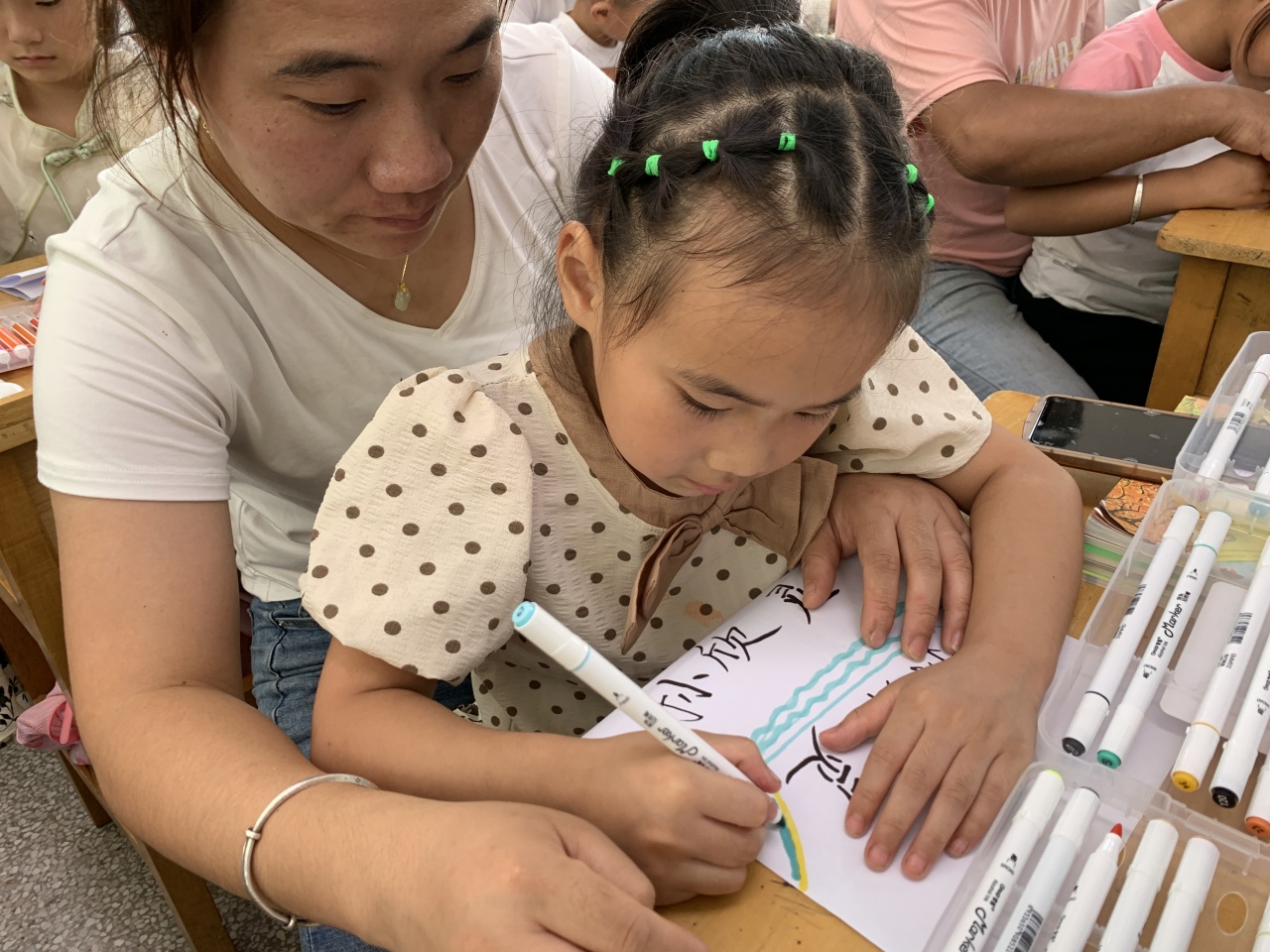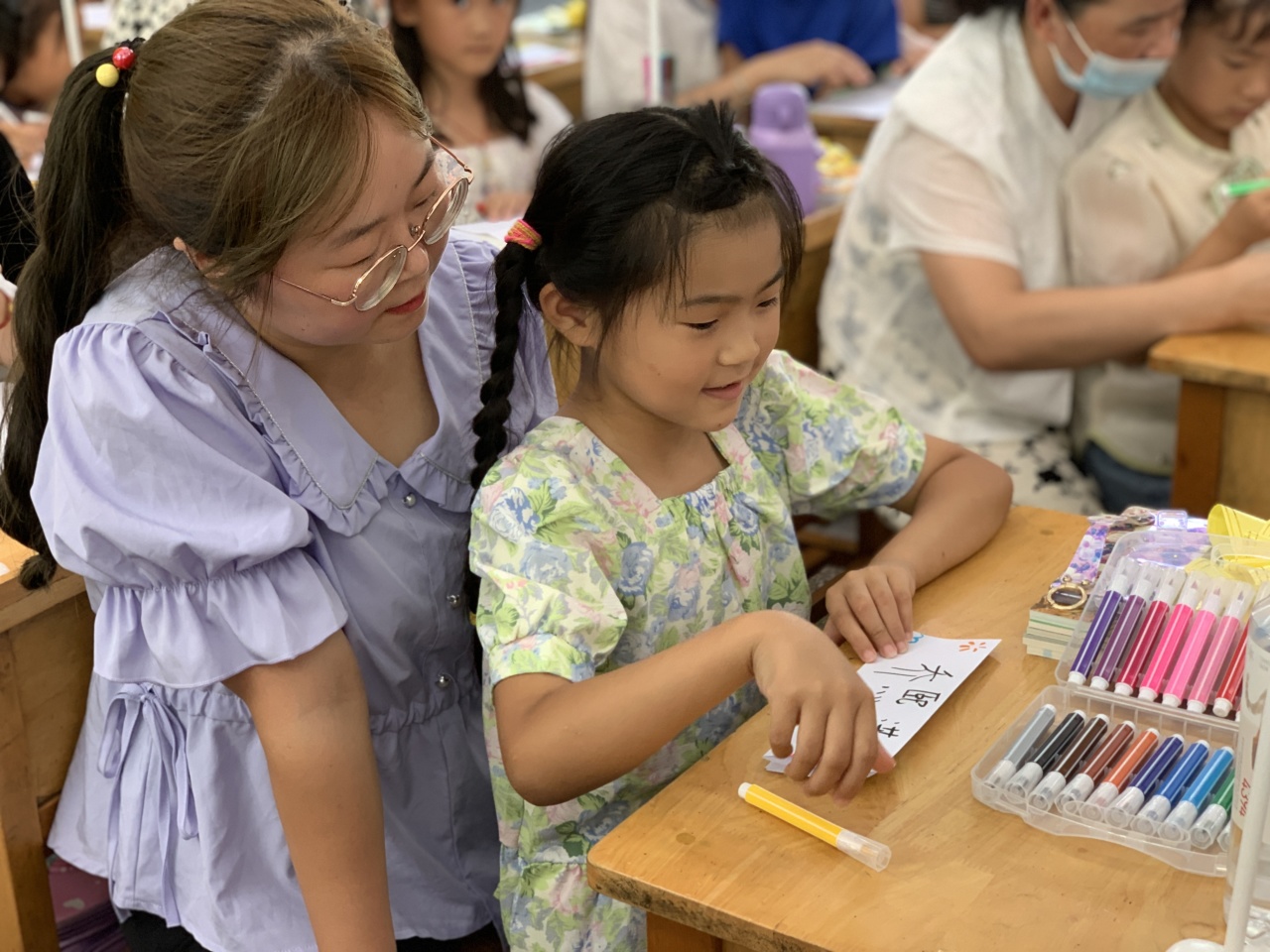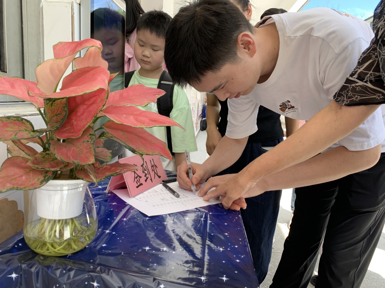 瞧,一年级的小萌新们正迫不及待地和爸爸妈妈们一起制作属于自己的姓名牌呢!