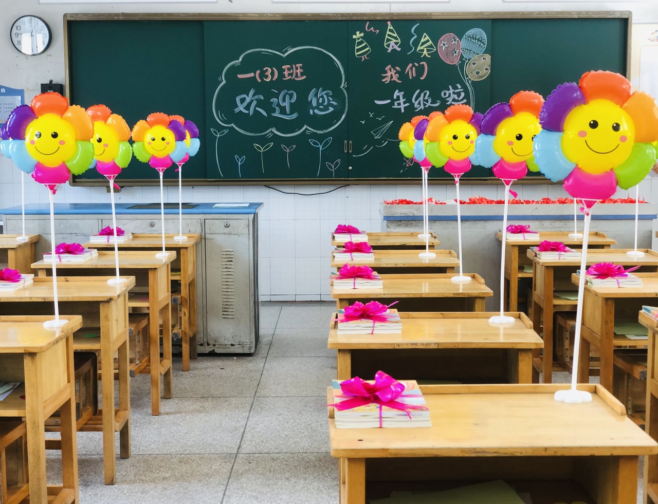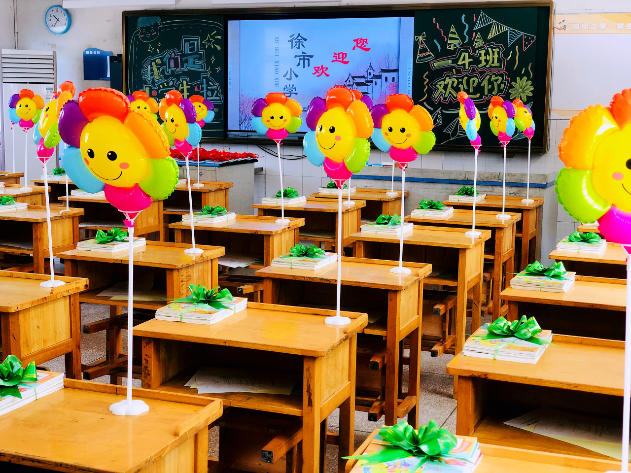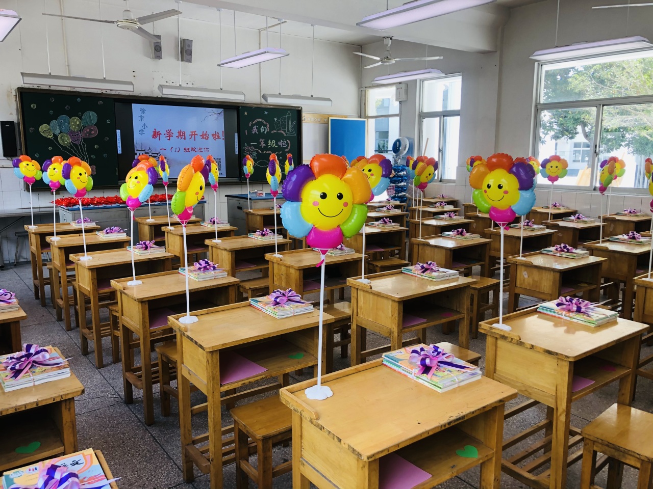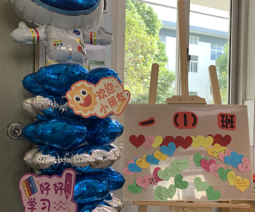 为了迎接一年级新生的到来,学校精心策划,老师别出心裁,扎着彩带的书本是希冀,五彩笑脸气球也象征着多彩童年,窗明几净的教室里,充满温馨与爱意……小小的仪式感,大大的真祝福,让每个“小家”温暖而有爱。