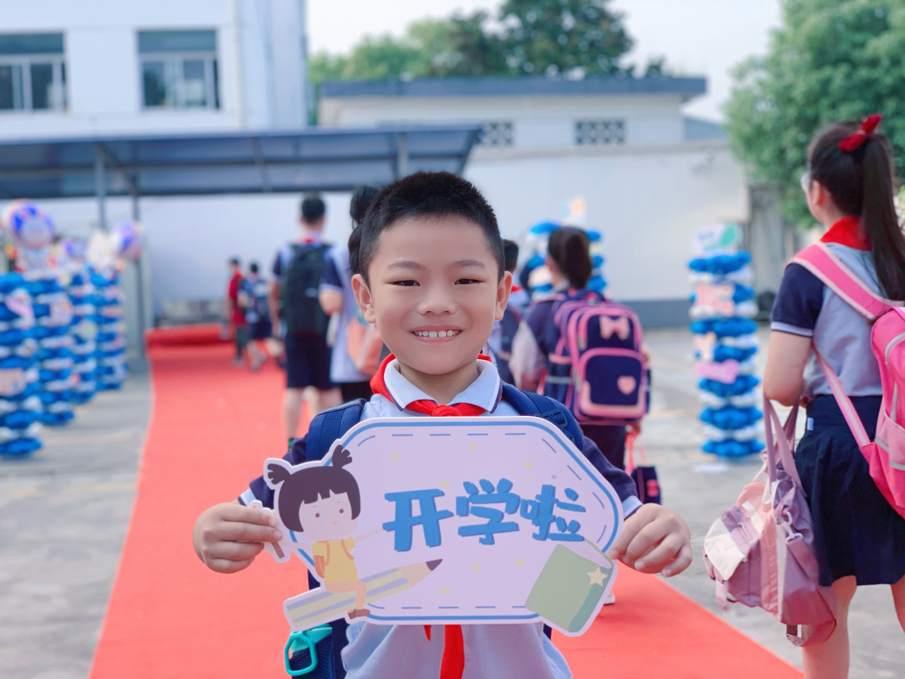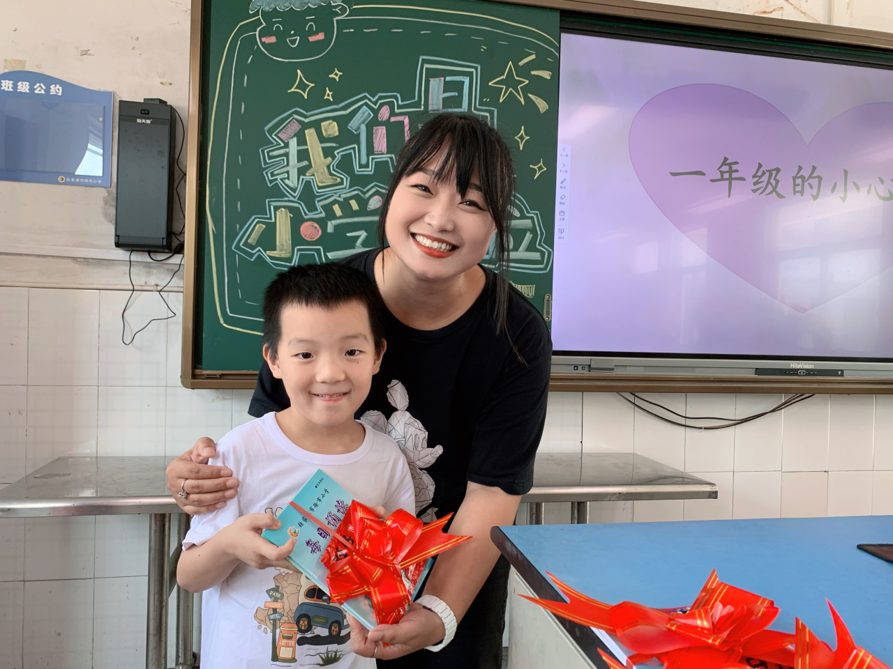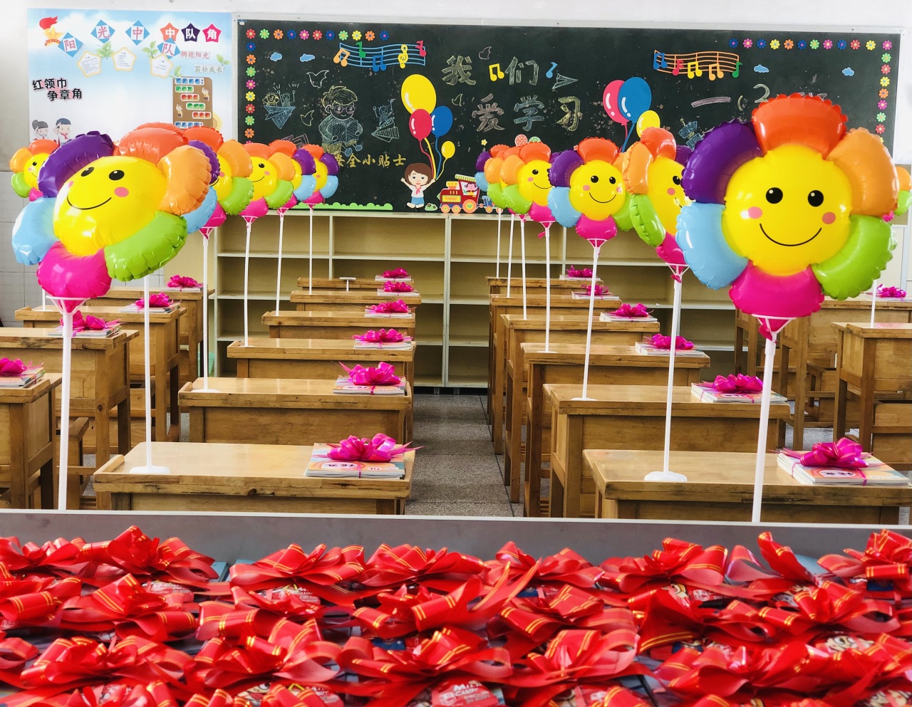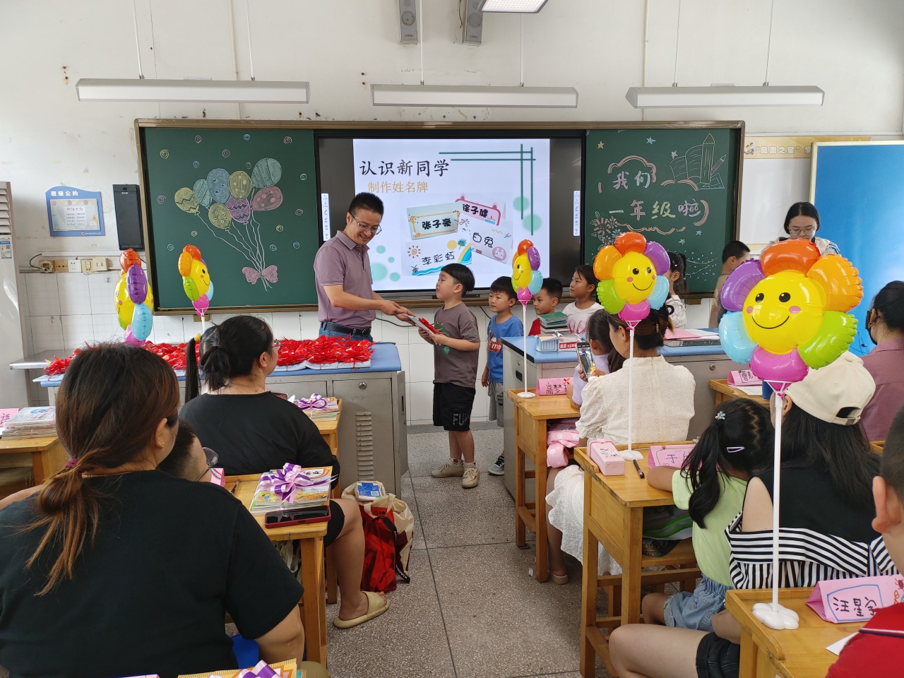 为了迎接一年级新生的到来,学校精心策划,老师别出心裁,扎着彩带的书本是希冀,五彩笑脸气球也象征着多彩童年,窗明几净的教室里,充满温馨与爱意……小小的仪式感,大大的真祝福,让每个“小家”温暖而有爱。
