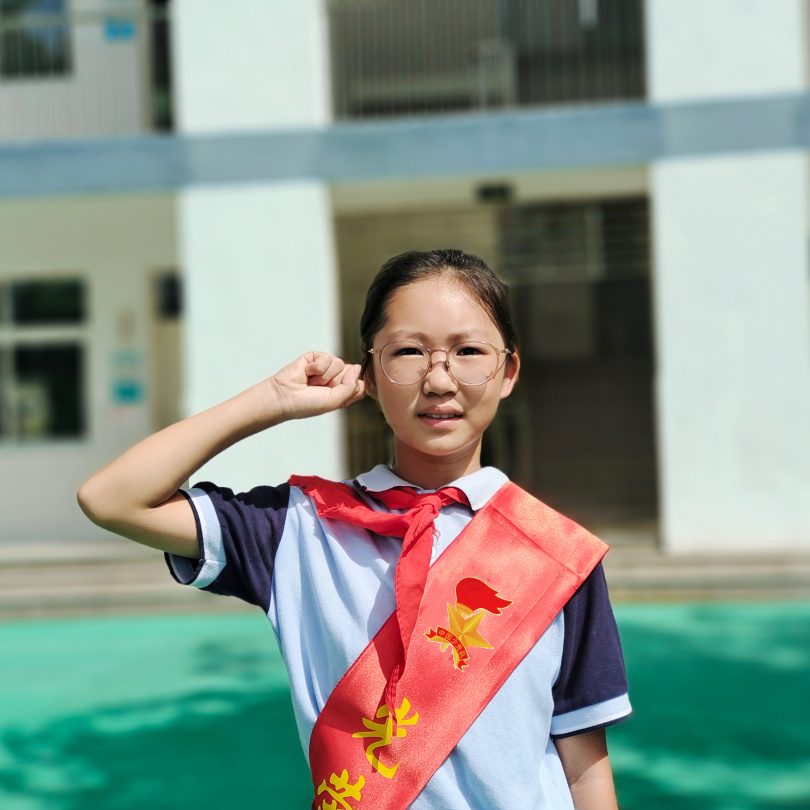少先队大队长六(4)中队曾梓萱带领全体队员宣誓