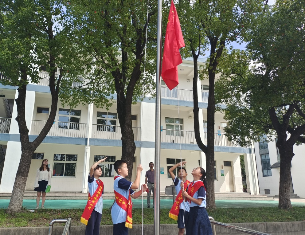 2023年秋季开学典礼在庄重而严肃的升旗仪式中拉开帷幕。在雄壮的国歌声中,鲜艳的五星红旗在老师和队员们的注目下冉冉升起。