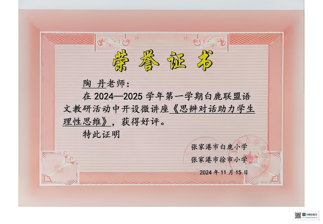 喜报:我校陶丹老师在白鹿联盟语文教研活动中作微讲座,佟青青等老师执教公开课,获得一致好评 来源: 发布时间:2024-11-22 07:46:28 浏览次数: 次 【字体:小 大】 我校陶丹老师在白鹿联盟语文教研活动中作微讲座,佟青青、吴昊晟、蔡蓓珂、韦媛雯老师执教公开课,获得一致好评。 终审:冯文刚 分享到: 【打印正文】