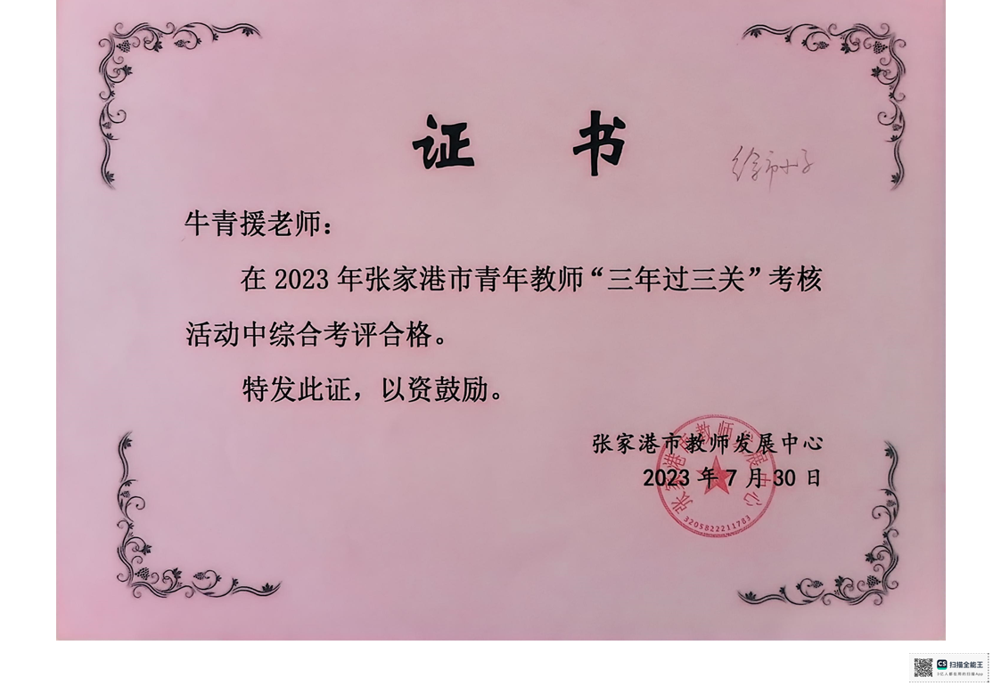 喜报:我校余金艳、吴昊晟、韦媛雯、苗缝春、唐敏州、牛青援老师2023年青年教师“三年过三关”考评合格 来源: 发布时间:2024-11-27 09:44:42 浏览次数: 次 【字体:小 大】 我校余金艳、吴昊晟、韦媛雯、苗缝春、唐敏州、牛青援老师2023年青年教师“三年过三关”考评合格 终审:冯文刚 分享到: 【打印正文】