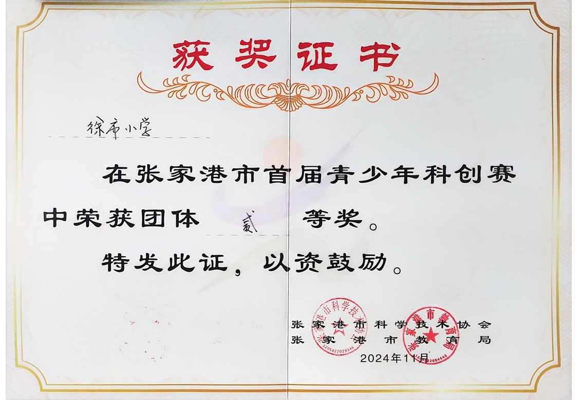 喜报:我校胡子睿等学生在张家港首届青少年科创赛中喜获佳绩 来源: 发布时间:2024-12-02 13:15:03 浏览次数: 次 【字体:小 大】 我校胡子睿等学生在张家港首届青少年科创赛中喜获佳绩 终审:冯文刚 分享到: 【打印正文】